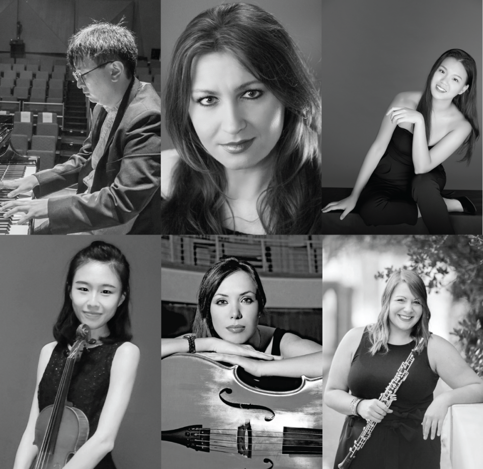 The winners of the Concerto Competition have come to study music at UGA from three different continents and six different countries. Yidan Zhang, violin; Seung Hyun (“Sonny”) Yoo, piano; Valentina Ignjic, cello; Magdalena Wór, mezzo-soprano; Kelly Mozeik, oboe; and Tsai-Wei Li, piano.
