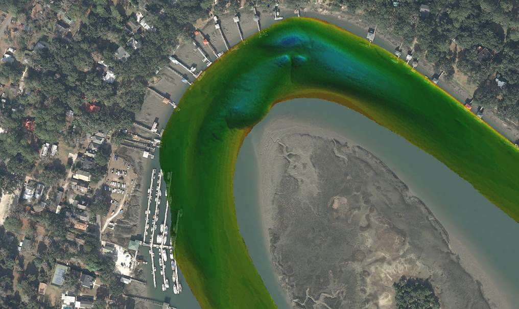 For the past five years, Alexander has been leading an effort to improve understanding of marine, coastal and estuarine habitats and functions using high-resolution sonar to map state water bottoms, with funding from the DNR Coastal Incentive Grant program. Alexander’s team has amassed critical depth and habitat information for five of Georgia’s sounds (Wassaw, Ossabaw, St. Catherine’s, Doboy and Sapelo), revealing deeply scoured areas where underwater cliffs have formed to create hard substrate where complex ecosystems and biological communities have developed.